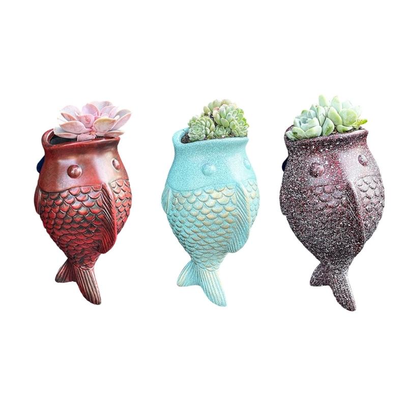 Wall Mount Spotted Fish Planter For Hanging Plant Easy Installation Resin Indoor Outdoor Decoration Handicraft Ornament