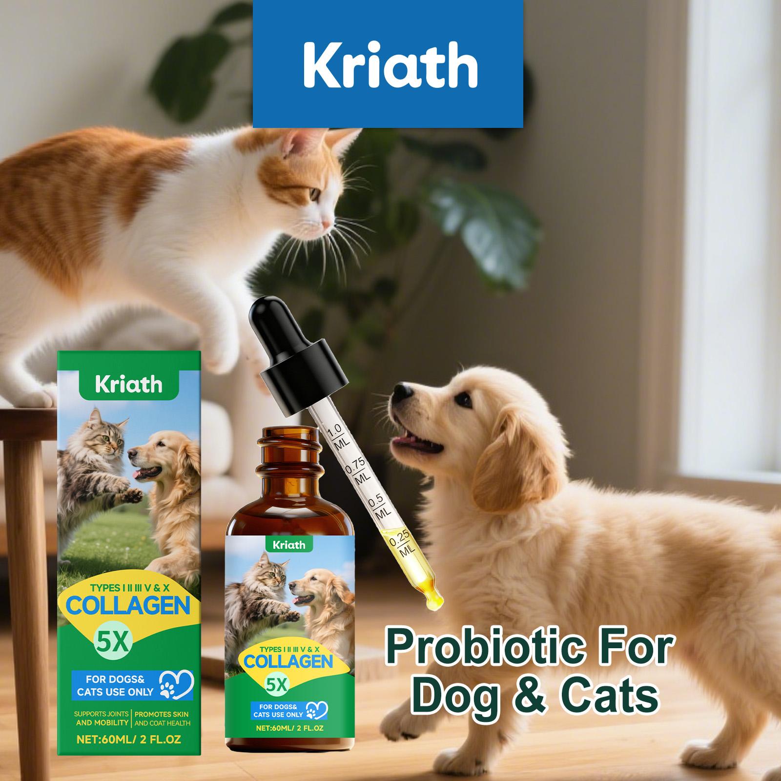 Kriath Pet Kollagendråper 60ml, katter og hunder. leddpleie, hudhelse, pelskvalitet, tarmhelse, styrking av immunforsvaret for kjæledyr.
