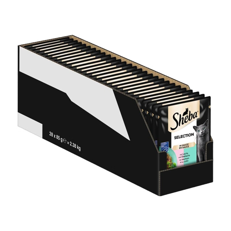SHEBA Portionsbeutel Nassfutter für Katzen Selection in Sauce mit Lachs und Seelachs MSC-Zertifiziert 28 x 85g