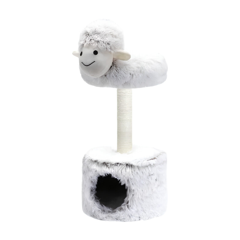 NOBLEZA Kratzbaum in Schaf-Form mit einzelner Stange, weiß, L 34 x B 34 x H 67 cm, 1 Stück, für Katzen