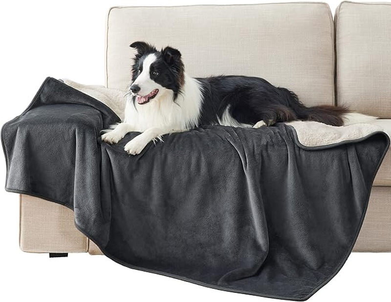 [Nur 8,99€] Lenor wasserdichte Hundedecke für große Hunde, Outdoor-Hundedecke, waschbare Hundedecke, Sofaschutz, Sherpa-Fleece-Katzendecke, flauschig und weich, 152 x 127 cm, Dunkelgrau