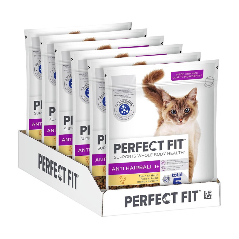 PERFECT FIT™ Anti-Hairball Adult Trockenfutter für erwachsene Katzen ab 1 Jahr - Huhn, 750g (6 Beutel)
