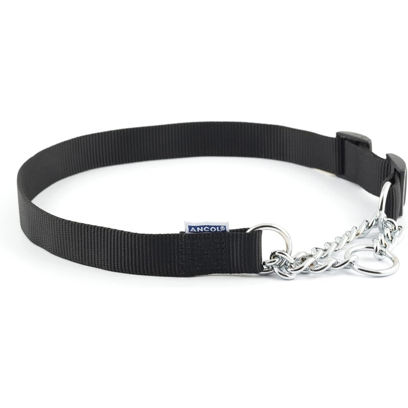 Ancol Nylon Check Chain Collar Black 50-70cm Size 5-9