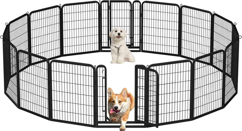 Yaheetech 80 cm Spielgitter für Hunde mit 16 Segmenten, 2 Türen, Automatikverschluss, klappbare Gartenzäune