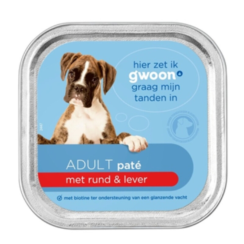 G'woon hondenvoer, runderlever, beker, 150 g