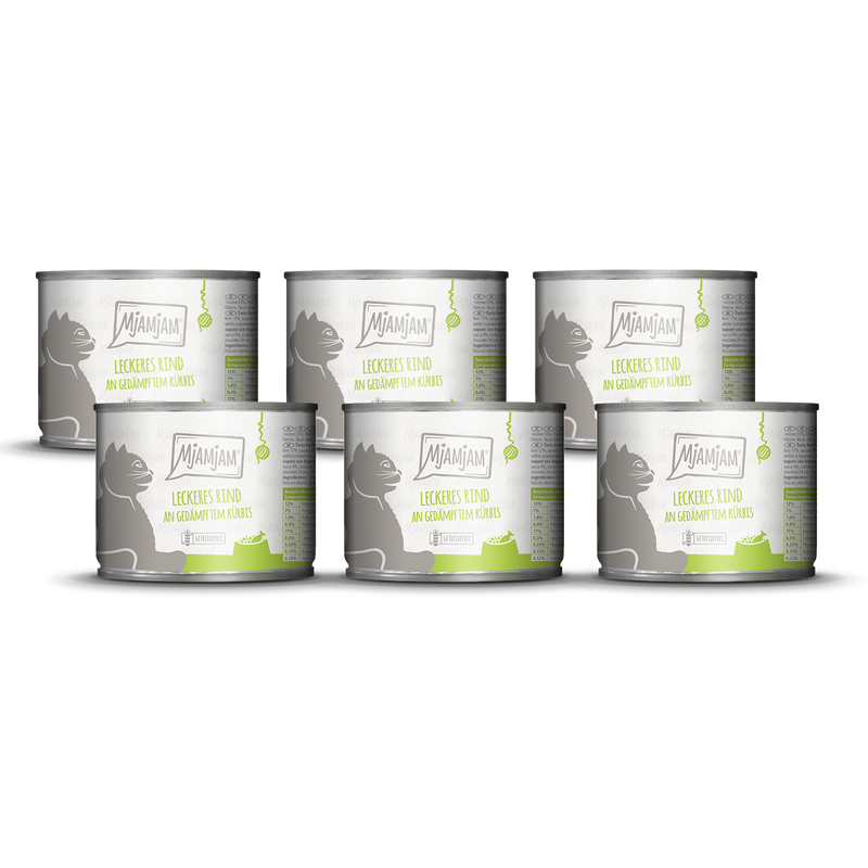 MjAMjAM Leckeres Rindfleisch mit gedünstetem Kürbis und Hühnerleber 6x200g