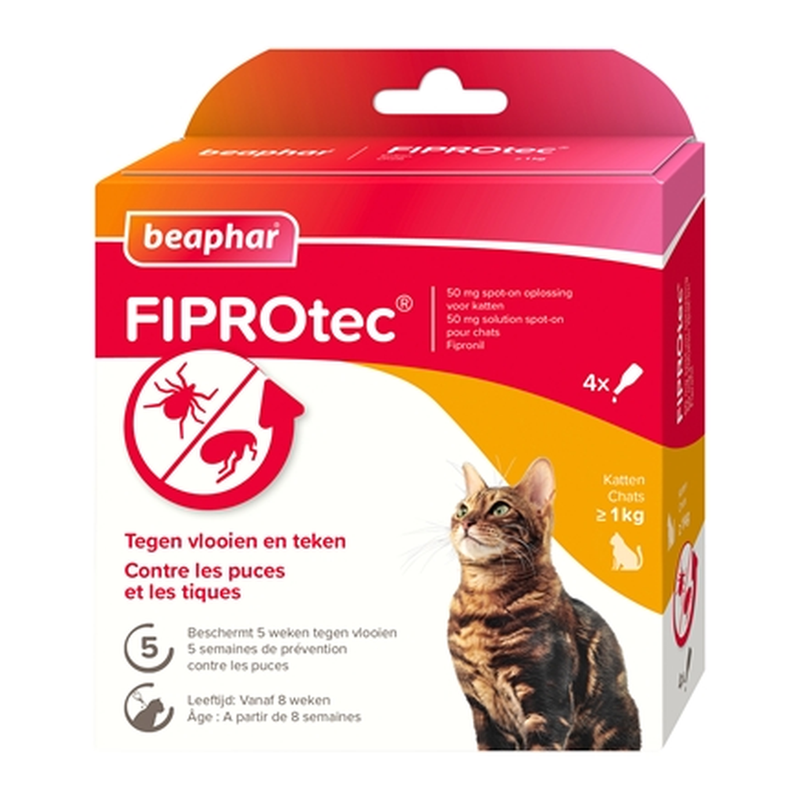 Beaphar FIPROtec Spot-on anti-puces et tiques pour chats de plus de 1 kg - 4 pipettes de 50 mg