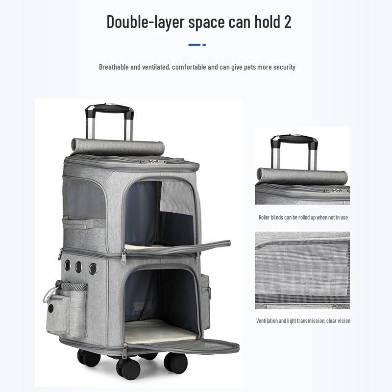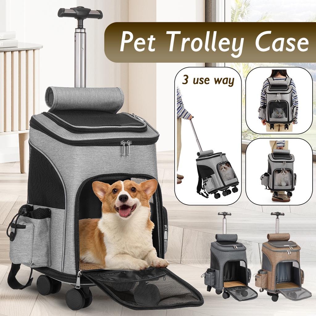 Sac à dos de transport pour animaux à roulettes Sac de transport de voyage pour chiots chats Roues amovibles Fenêtre de ventilation en maille Poches d