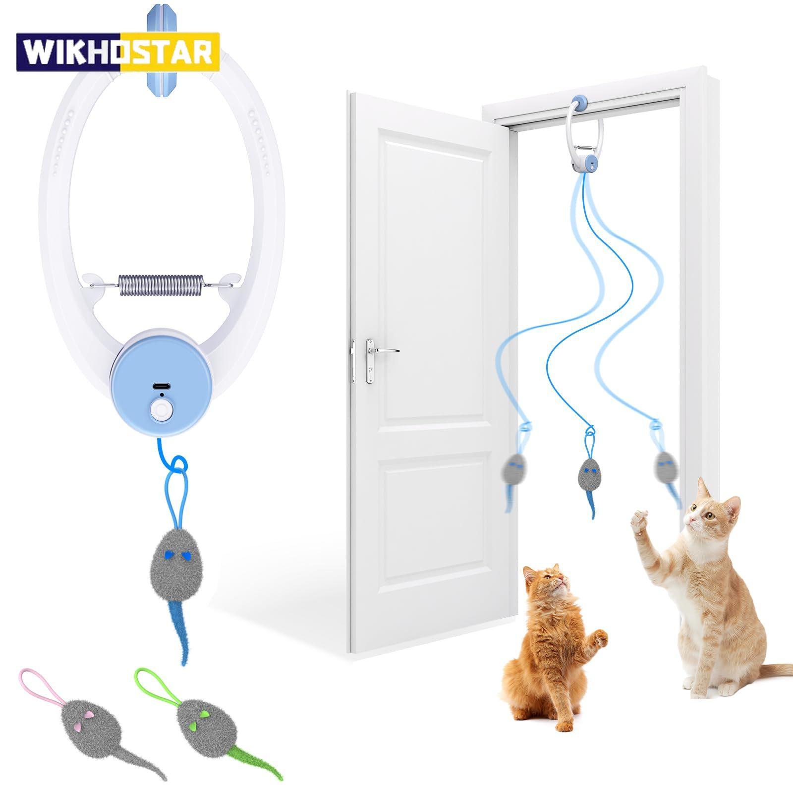 Jouet Chat à Rebond Automatique à Suspendre à la Porte, Jouet Teaseur Rétractable pour Chaton avec 3 Souris à Herbe à Chat, Jouet Interactif pour Chat