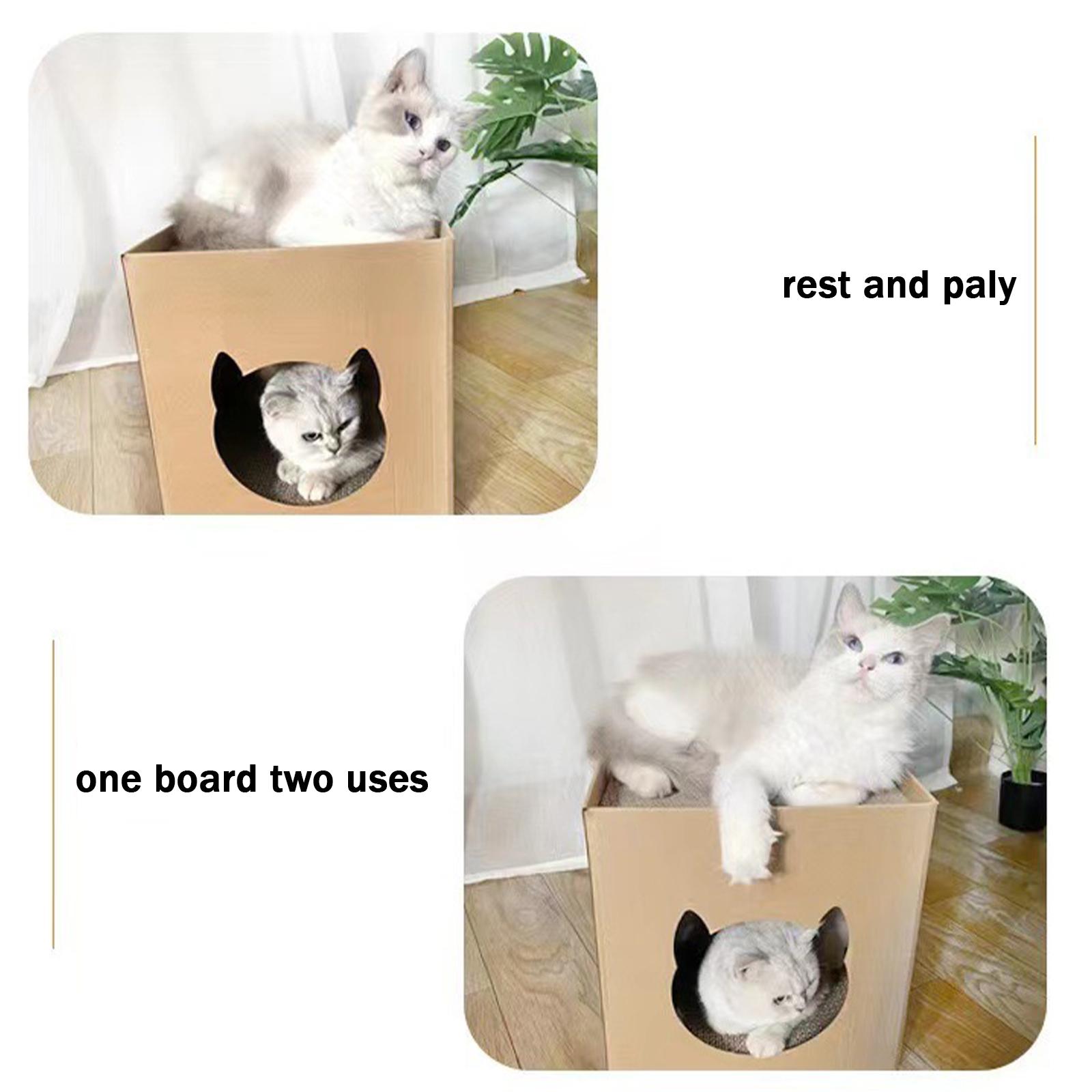 Katthus av papp med klorebrett, Hule av bølgepapp og kloreleke, Egnet for innekatter og kattunger til å sove og leke.