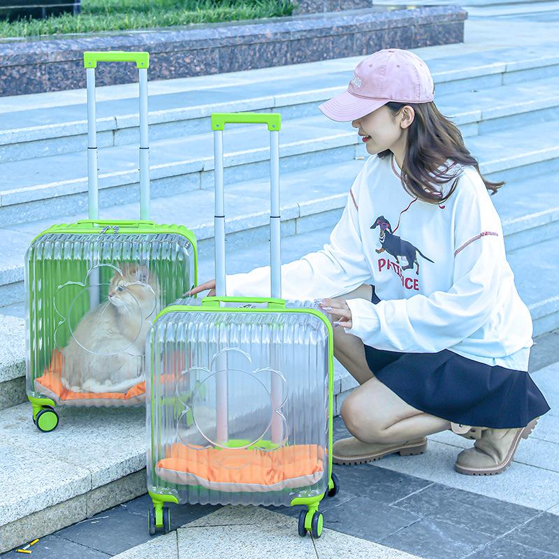 Valise à roulettes portable pour chat et petit chien avec grande capacité