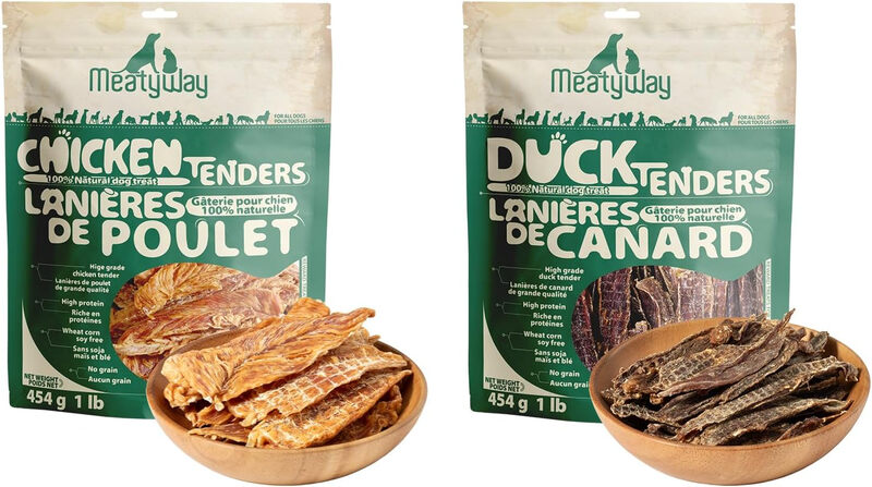MeatyWay Jerky-Streifen mit Huhn und Ente, Hundesnacks, proteinreich, fettarm, 100 % natürlich, getreidefrei, leicht verdauliche Leckerlis für die Hundetrainingseinheiten, 454 g/16 oz (2er-Pack)