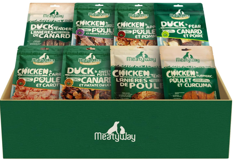MEATYWAY Friandises tendres pour chien, enrobées de fruits et légumes, hautes en protéines, faibles en matières grasses, 100 % naturelles, sans céréales et faciles à digérer - 8 x 100 g
