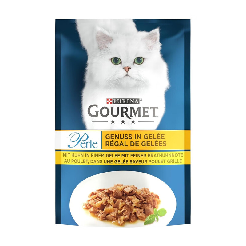 PURINA GOURMET Perle Genuss in Gelee Katzenfutter nass mit Huhn & feiner Brathuhnnote, 26er Pack (26 x 85g)