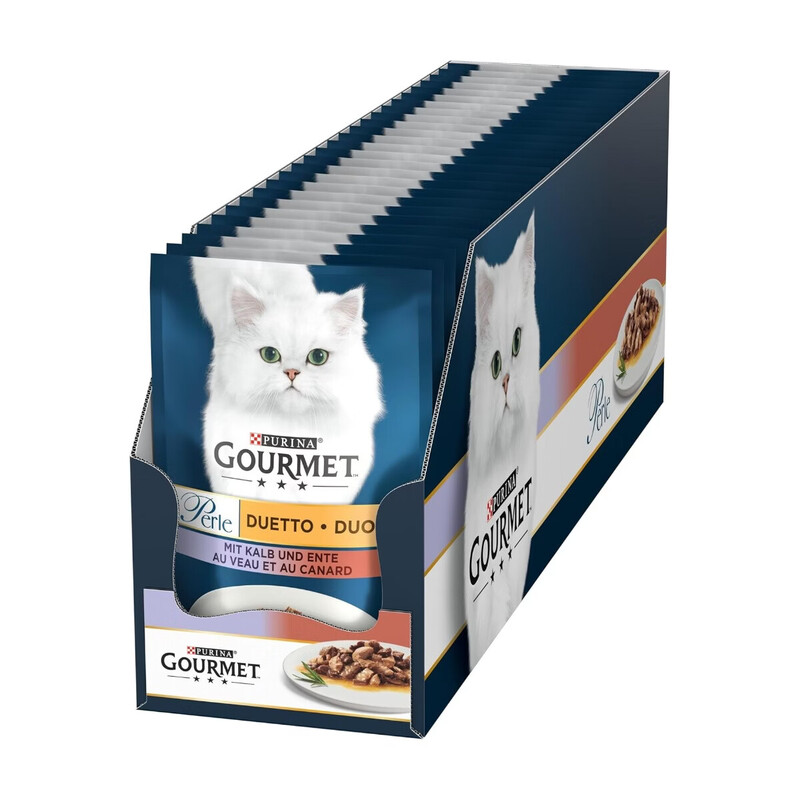PURINA Gourmet Perle Duetto Nassfutter für Katzen, mit Kalb und Ente, 26er Pack (26 x 85g)