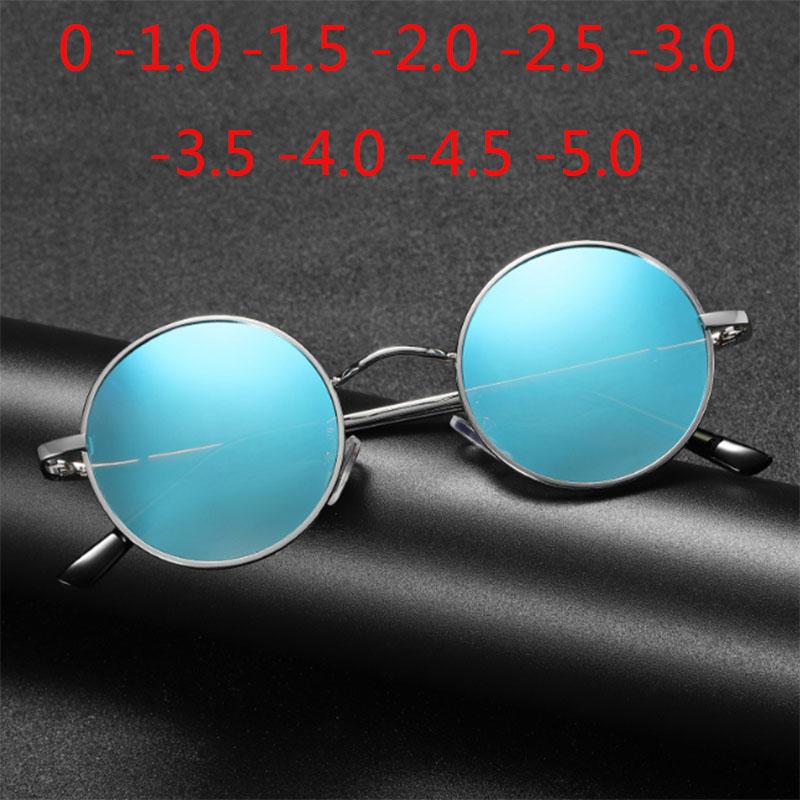 Klassieke Vintage Ronde Zonnebril Metalen Frame Rijden Myopie Sterkte Zonnebril 0 -0.5 -1.0 -2.0 Tot -5.0 cm