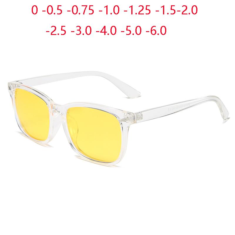 0 -0.5 -0.75 To -6.0 Transparent Frame Night Vision Lens Myopia Sunglasses Women Men Square Prescription Spectacles cm