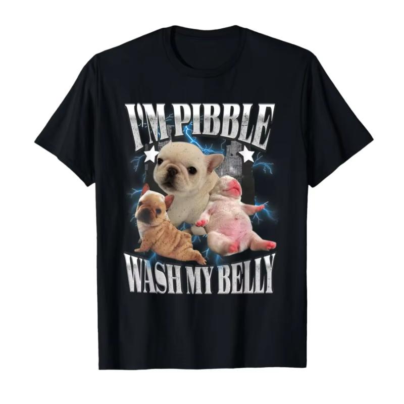 Im Pibble Wash My Belly Fransk Bulldogg Brainrot Gen Z Meme T-shirt för Män Kvinnor 100% Bomull T-shirts Kortärmade Toppar Populär cm