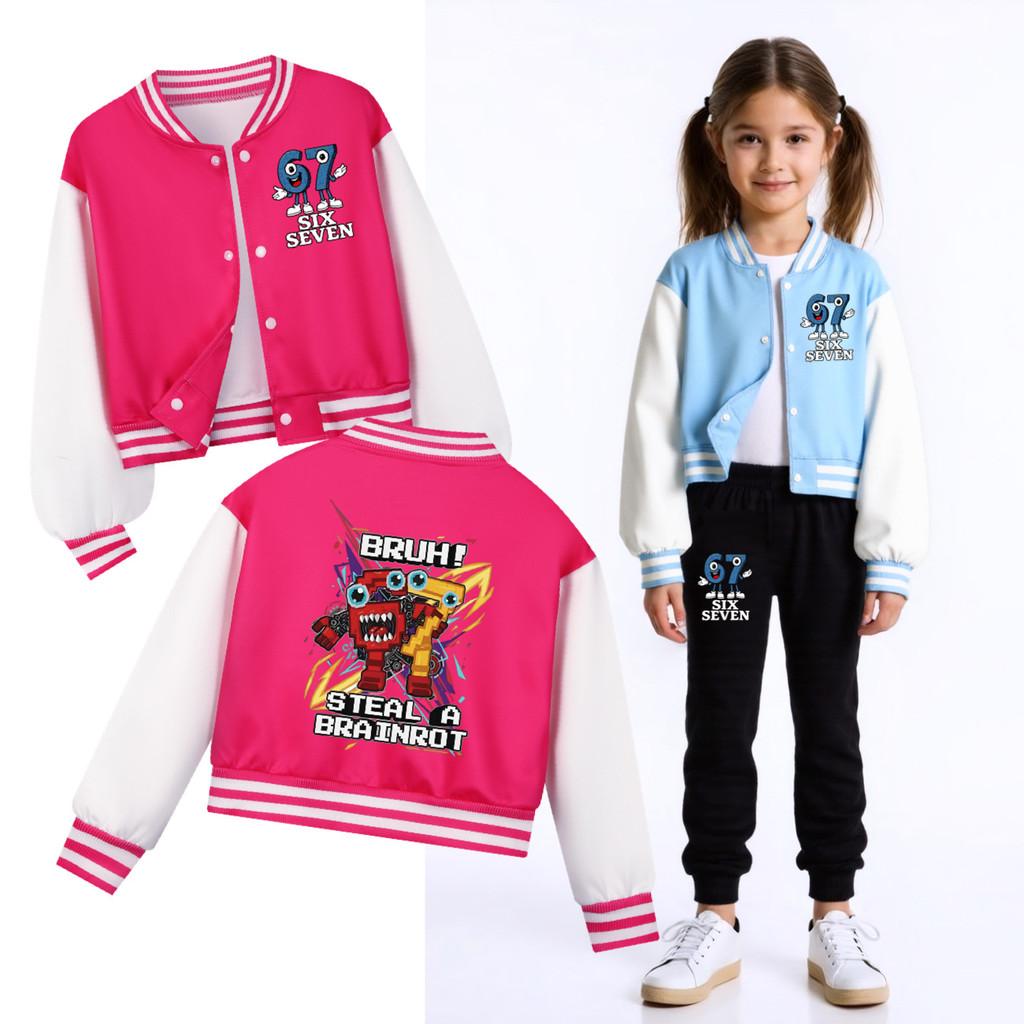 5227 Barn Flickor Pojkar Steal a Brainrot 67 Six Seven Mönstrad Casual Långärmad Baseballjacka Kappa 120cm himmelsblå färg