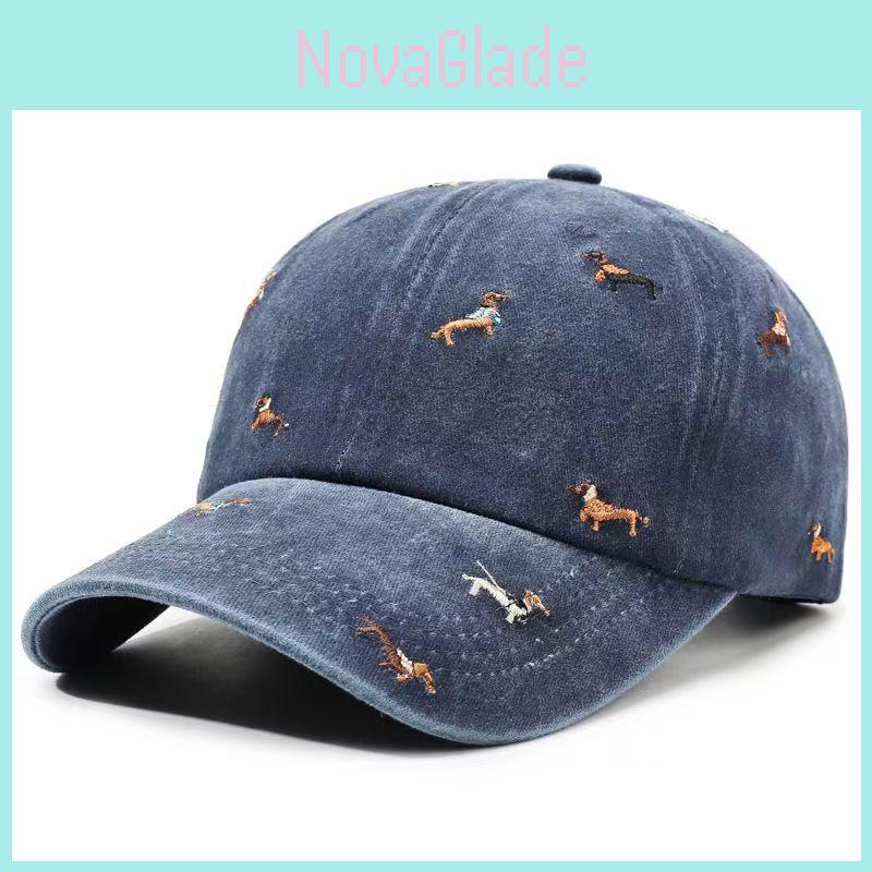 Dog Embroidered Denim Baseball Cap With Sun Protection For Street Style Fall red