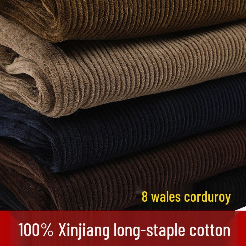 Pantalon en velours côtelé 100% coton taille haute pour homme - Jambe droite ample, Vêtement décontracté Automne/Hiver pour personnes d'âge moyen et â