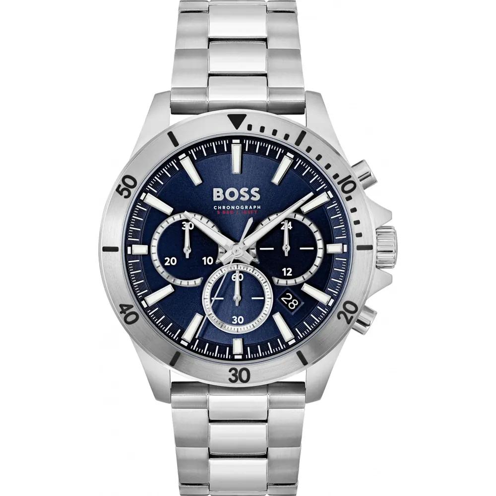 BOSS Troper Blauw Roestvrij Staal Zilver Heren Kwarts Chronograaf 1514069 blauw