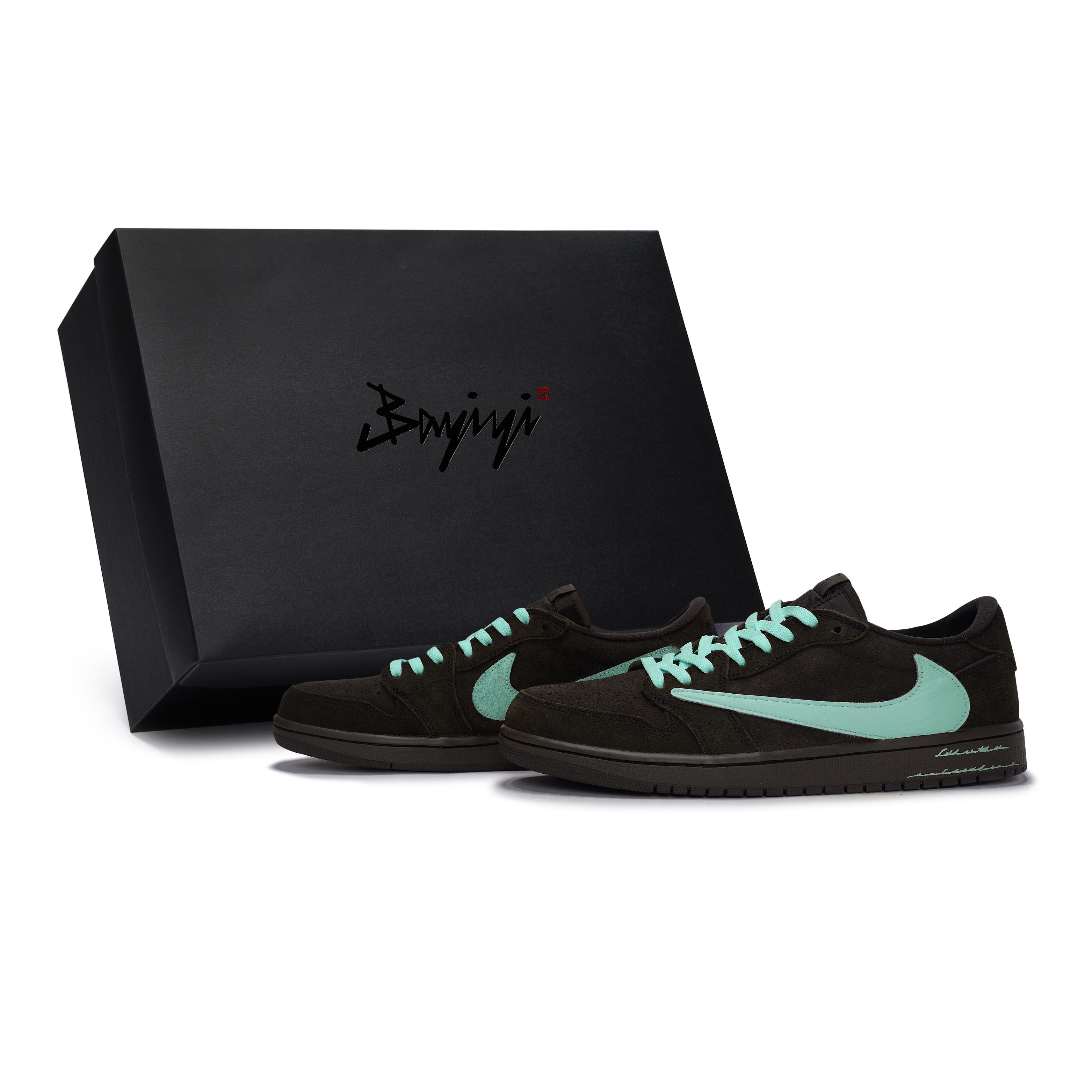 Travis Scott X Jordan Air Jordan 1 Chaussures de Basketball Vintage Unisexes Basse Tiffany DM7866-202(Team80-S-BOX) cm