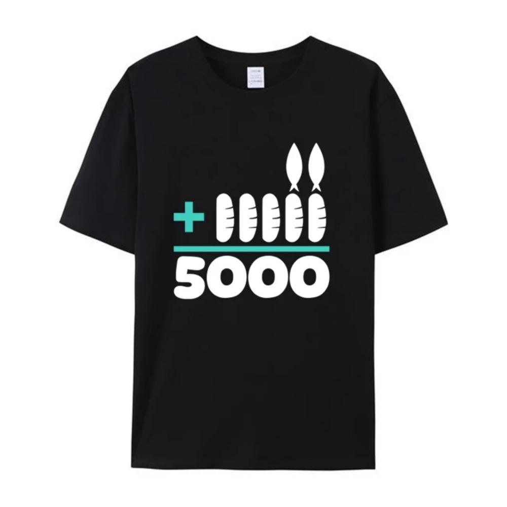 2 Fishes 5 Breads 5000 Chosen Against The Current Men's T-Shirt Jesus Christ Short Sleeve Casual Women Tee Shirts cm black