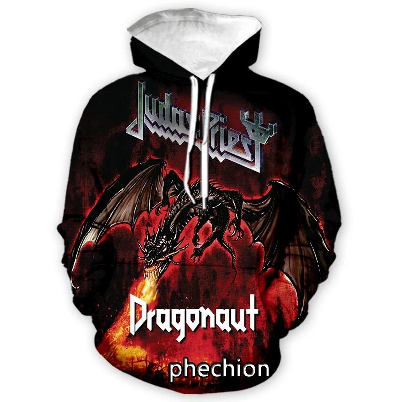 phechion Nouveau Mode Homme/Femme Judas Priest Groupe de Rock Impression 3D Manches Longues Sweat à Capuche Décontracté cm