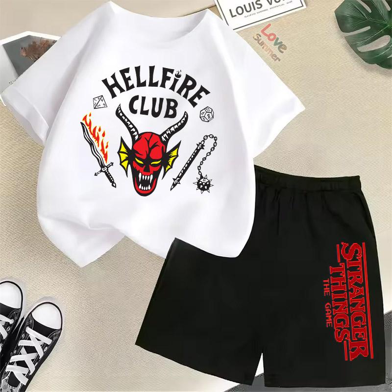 Demogorgon Lato Zestaw koszulek dla dzieci Chłopcy/dziewczynki Krótki rękaw szorty stroje Stranger thing 3-12 Nadruk kreskówkowy cm
