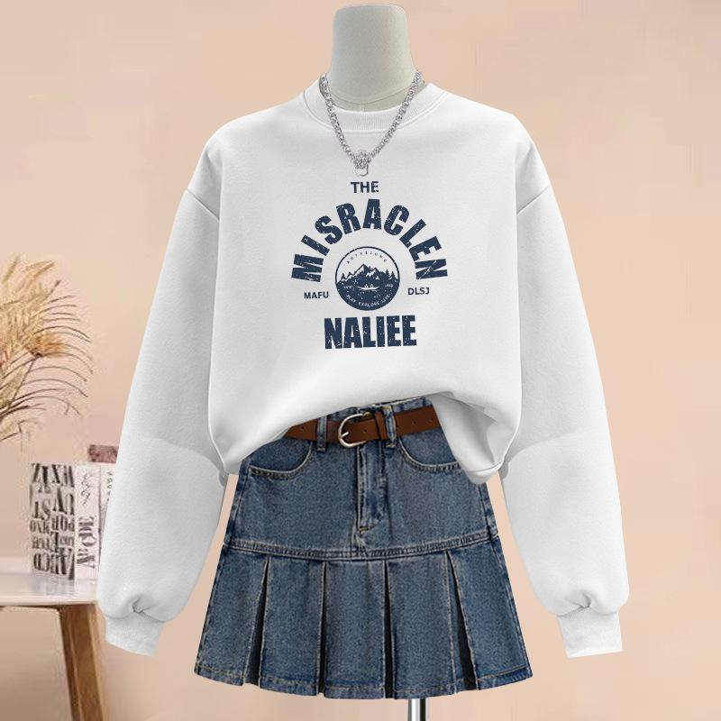 Factory wholesale 2025 new spring and autumn sweater women's pure cotton t-shirt students winter fleece thicker tide cm