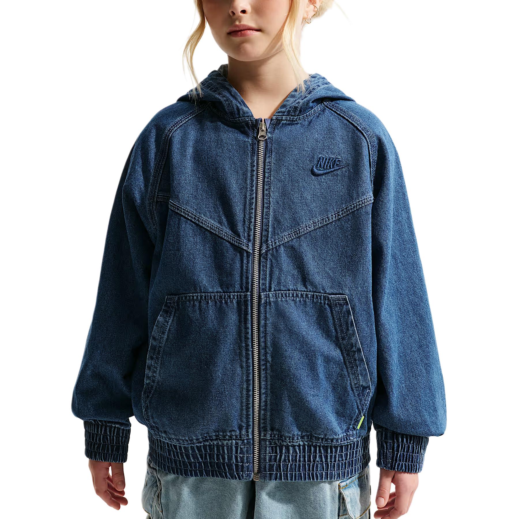 Nike Sportswear Kollektion Hel dragkedja Huvförsedd Denim Långärmad Barnjackor IF2306-435 cm