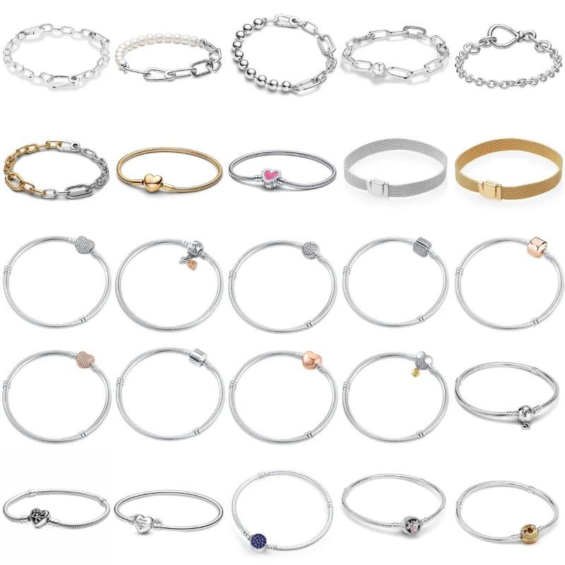 Selling 925 Sterling Silver Moments Mesh Bracelet Snake Chain Charm Beads Bracelet For Women Fashion Diy Jewelry 6 Styles