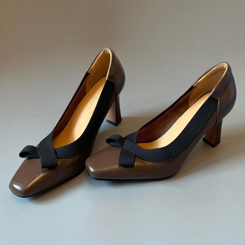 Retro High-heeled Shoes with Thin Heels, Soft Leather, Square Toe, Single Shoe, Women's Shoes cm beige