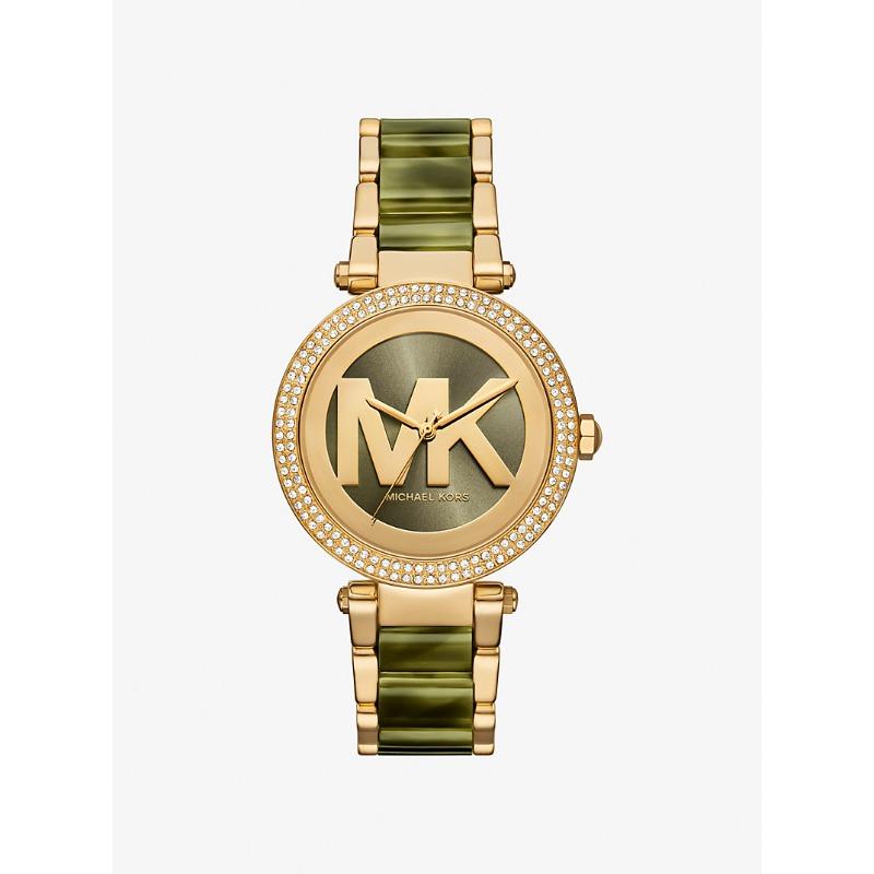 Michael Kors Parker Pavé Gold-Tone Acetate Watch MKO1200 moss green