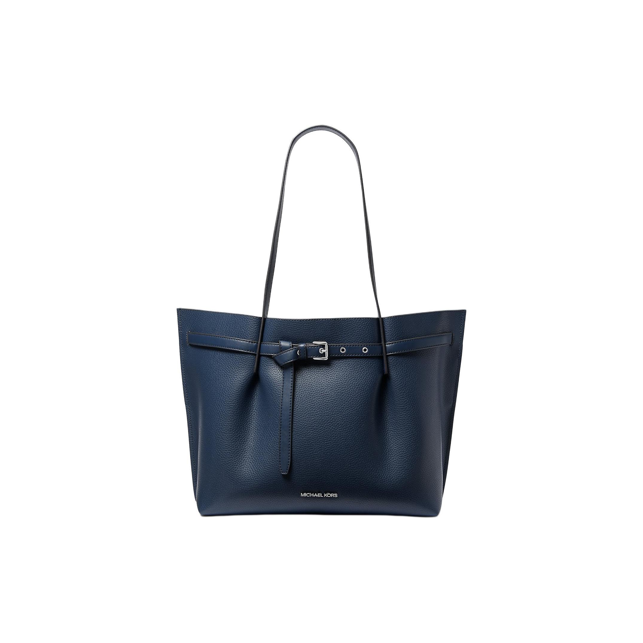 Michael Kors Mk Emilia Märke Metallogo Litchi-mönstrat Läder Toteväska Shoppingväska Handhållen Axelväska Dam Tote Mörkblå 35S1SU5T7T-NAVY