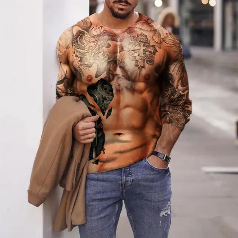 Bodybuilding Muscle Simulation T-shirts 3D Print Muscular Man Sports Tshirt Long Sleeve Men's Gym Fitness Top Tee Daily Clothing cm
