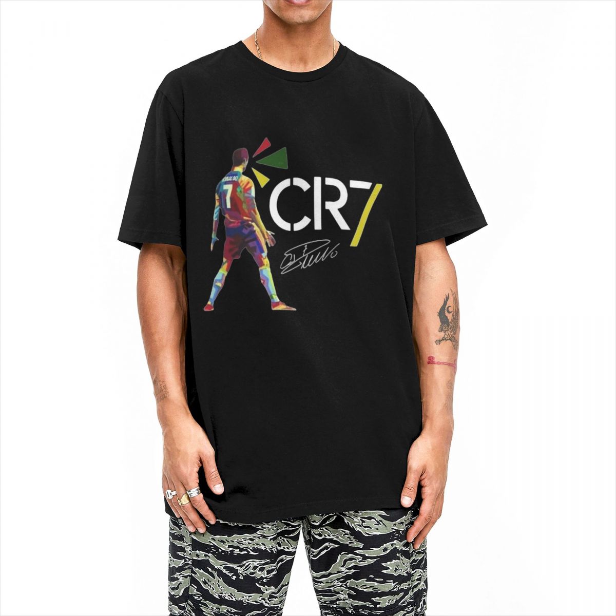 Cr7 Cristianoed Ronaldoed Signatur T-Shirt Herren Y2K Basic Reine Baumwoll-T-Shirts Strand O-Ausschnitt Mode-Tees Übergröße Kleidung cm