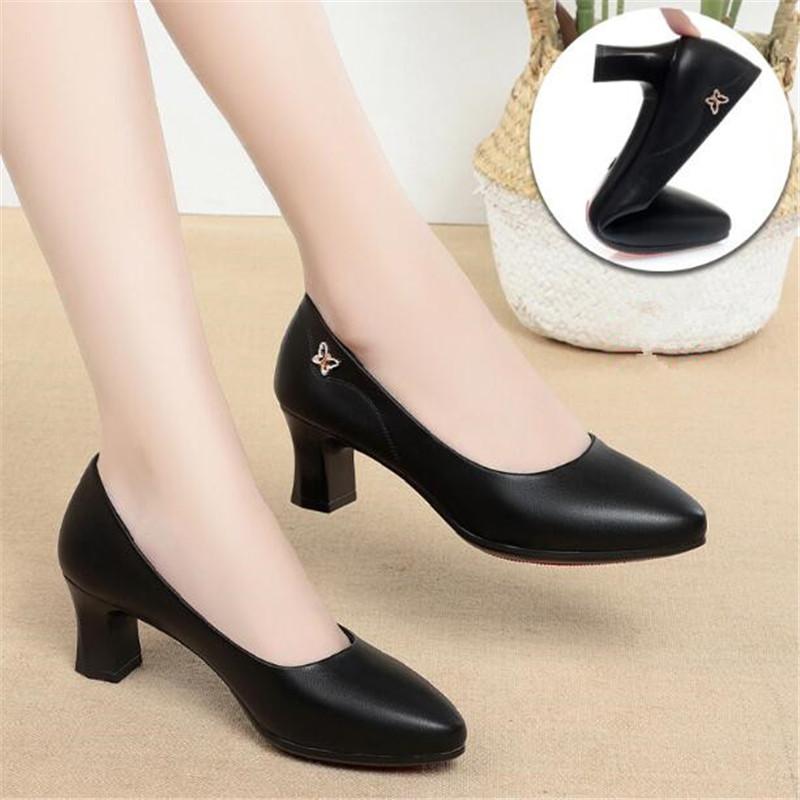 Mode Dames Pumps Schoenen Dames Echt Leer Ondiep Instapper Ronde Neus Hoge Hakken Schoenen Bruiloft Feest Kantoor Werkschoenen Maat 35-41 cm