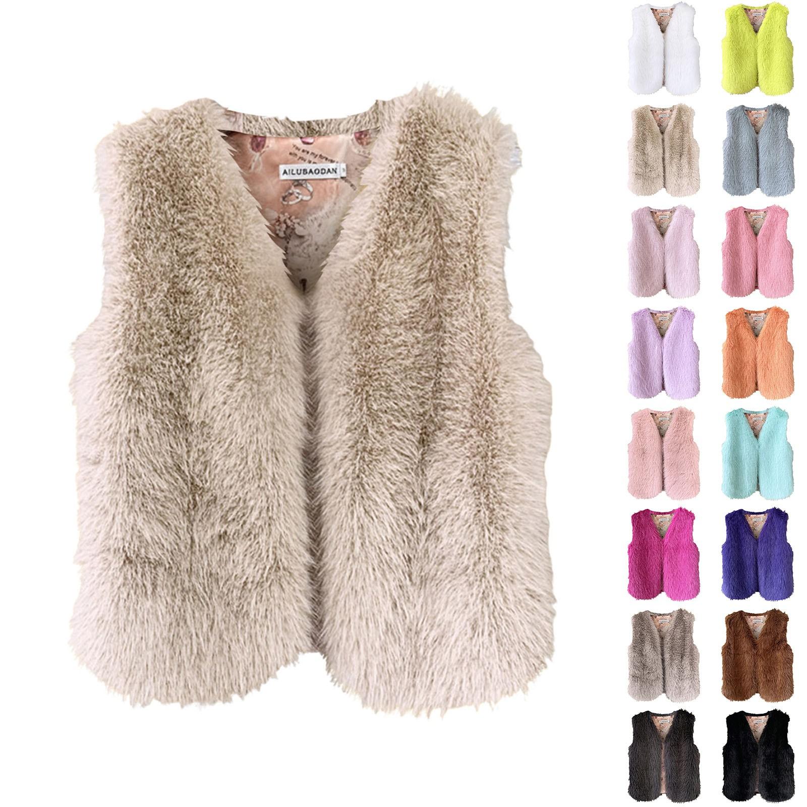 Women'S Faux Fur Vest Short Sleeveless Warm Winter Furry Cardigan Jacket Vest Temperament Versatile Candy Color Open Front Vest cm apricot