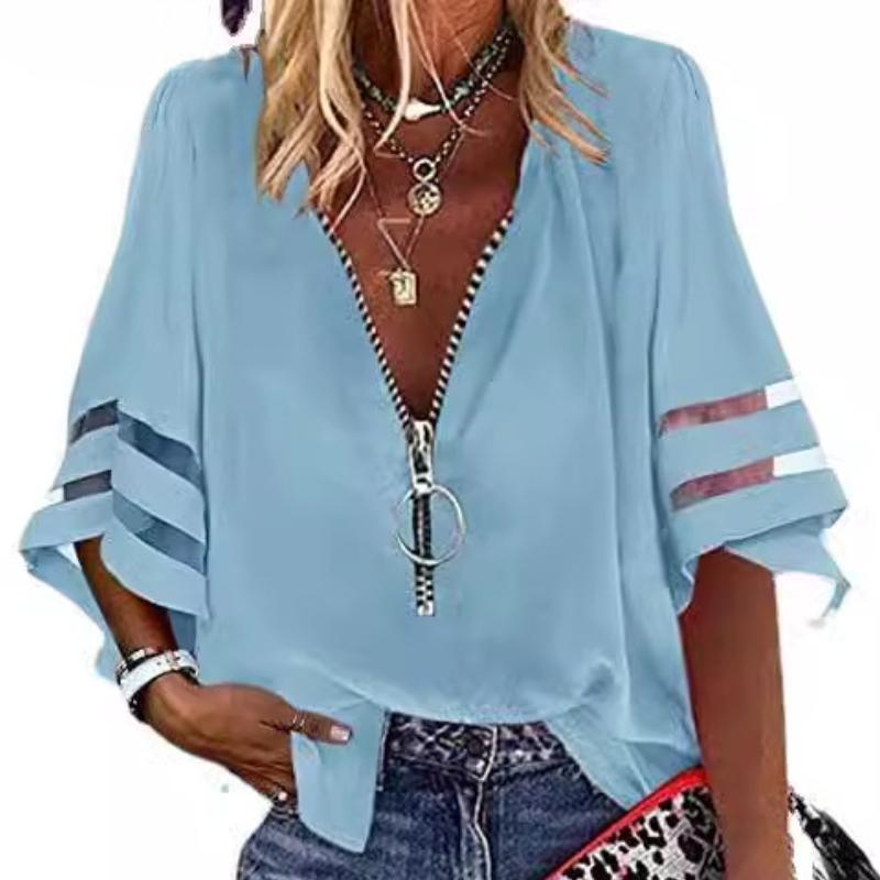 Moda damska Casual Lato Wiosna Jednolity kolor Nadruk Rękaw 1/2 Dekolt w kształcie litery V Bluzki i koszule cm kolor szary