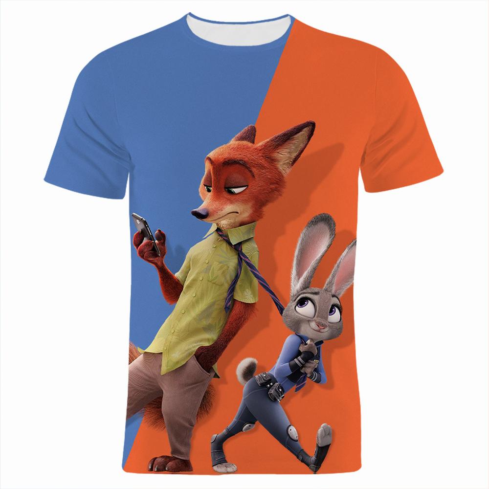 2026 Kinderen Losse Pasvorm Ronde Hals T-shirt Zomer Disney 'Zootopia' 3D Print Jongens Korte Mouw Cartoon Anime Top cm