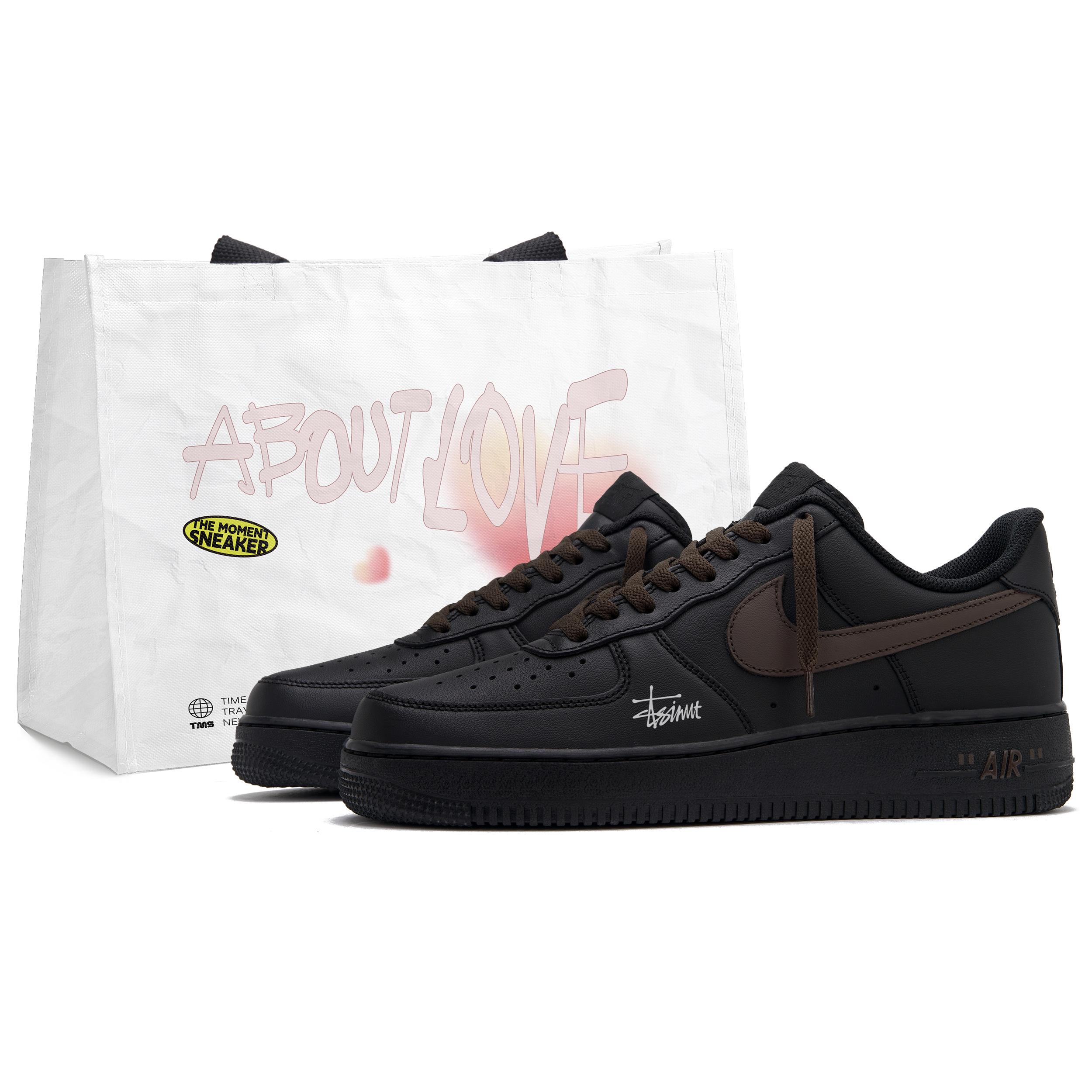 Nike Air Force 1 Croissant Bag Lave Skateboard sko Herre Svart Brun CW2288-001(Team645-) cm