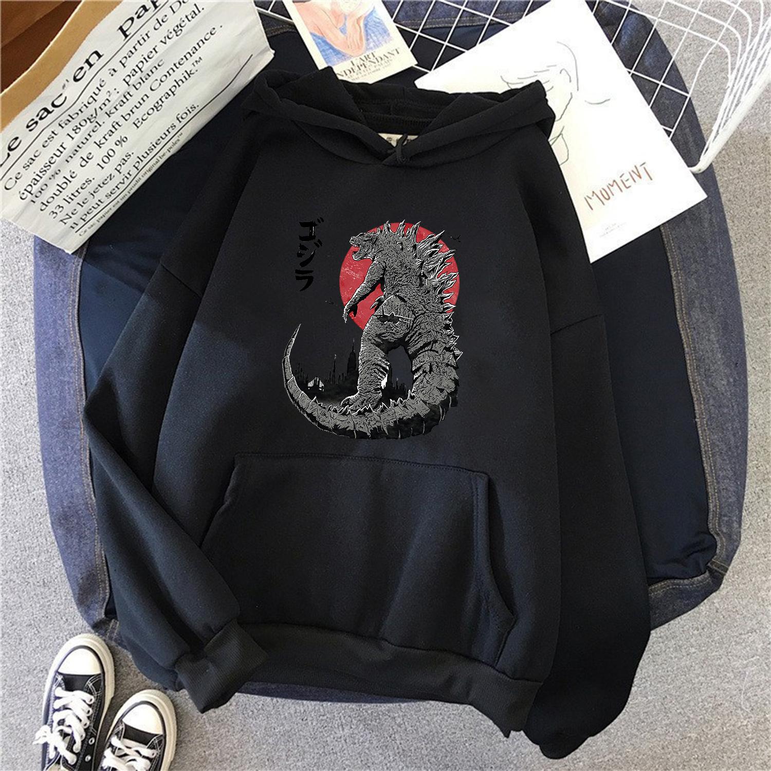 Godzilla Sweatshirt Adult Spring Autumn Hoodie with Hat Women Long Sleeve Clothes Pocket Cool Print Pullover Monster Clothes cm