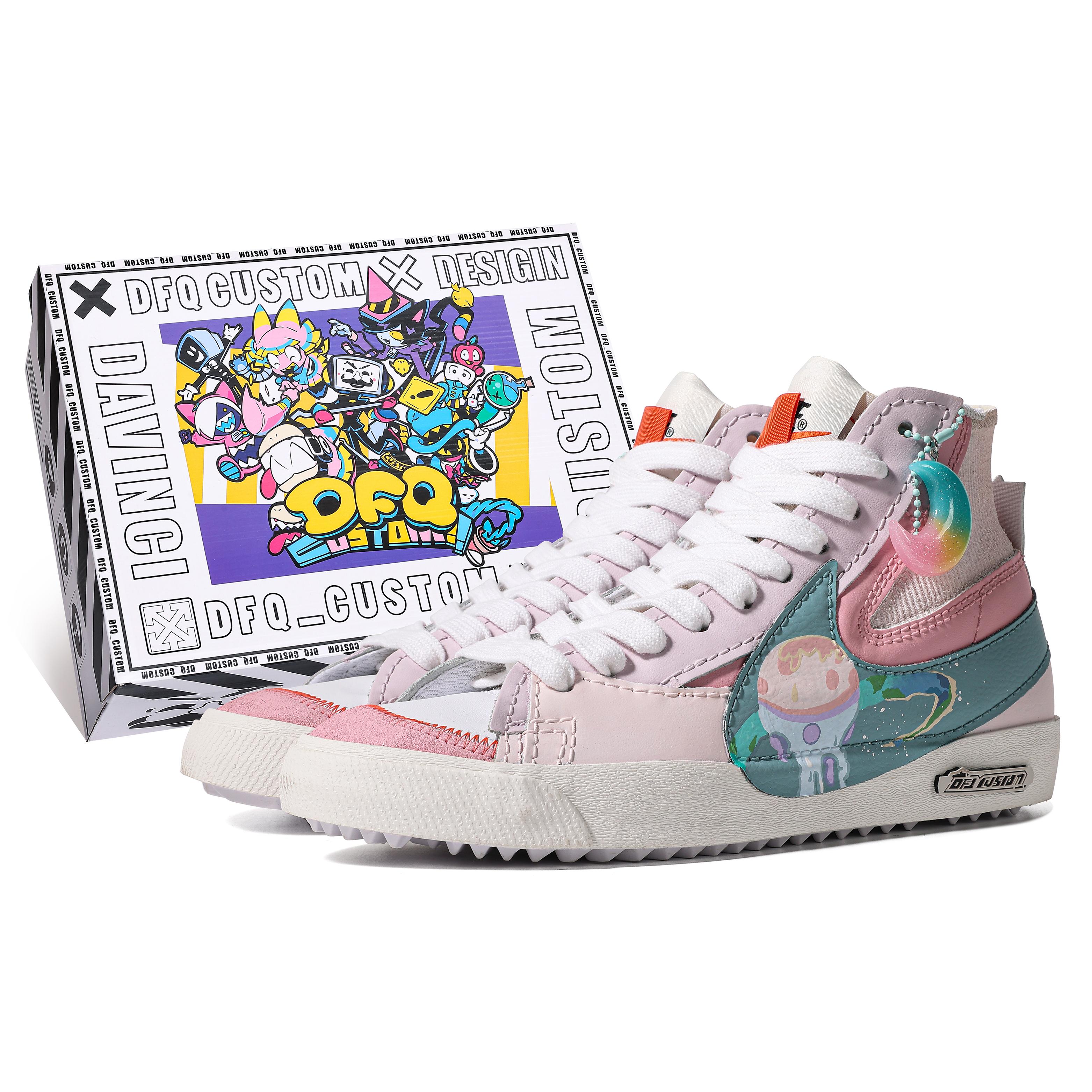 Nike Blazer Leder Abriebfest Abriebfest Mittelhoch Skateboard Schuhe Unisex Rosa Grün DD3111-100(TeamM-S-BOX) cm