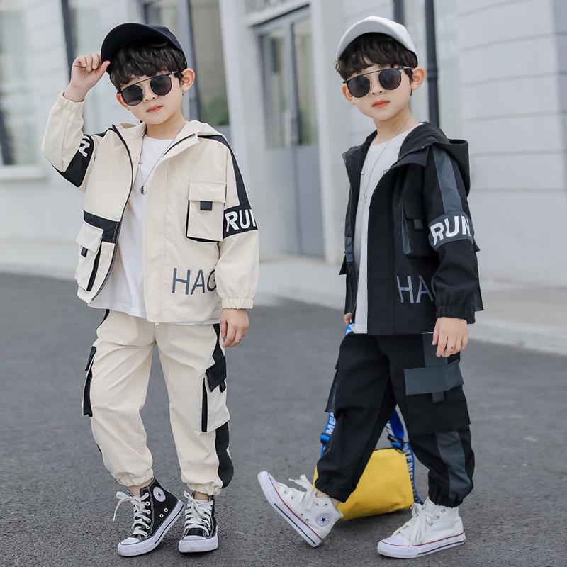 Fashion Kids Boys Two-piece Sports Suits Casual Boy Hooded Coat and Pants cm beige