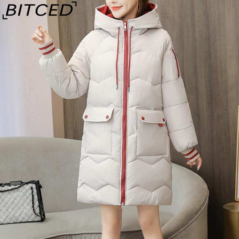 BITCED Women's Mid-Length Loose-Fit Winter Coat Thickened Padded Jacket Puffer Coat Cotton-Padded Jacket cm green