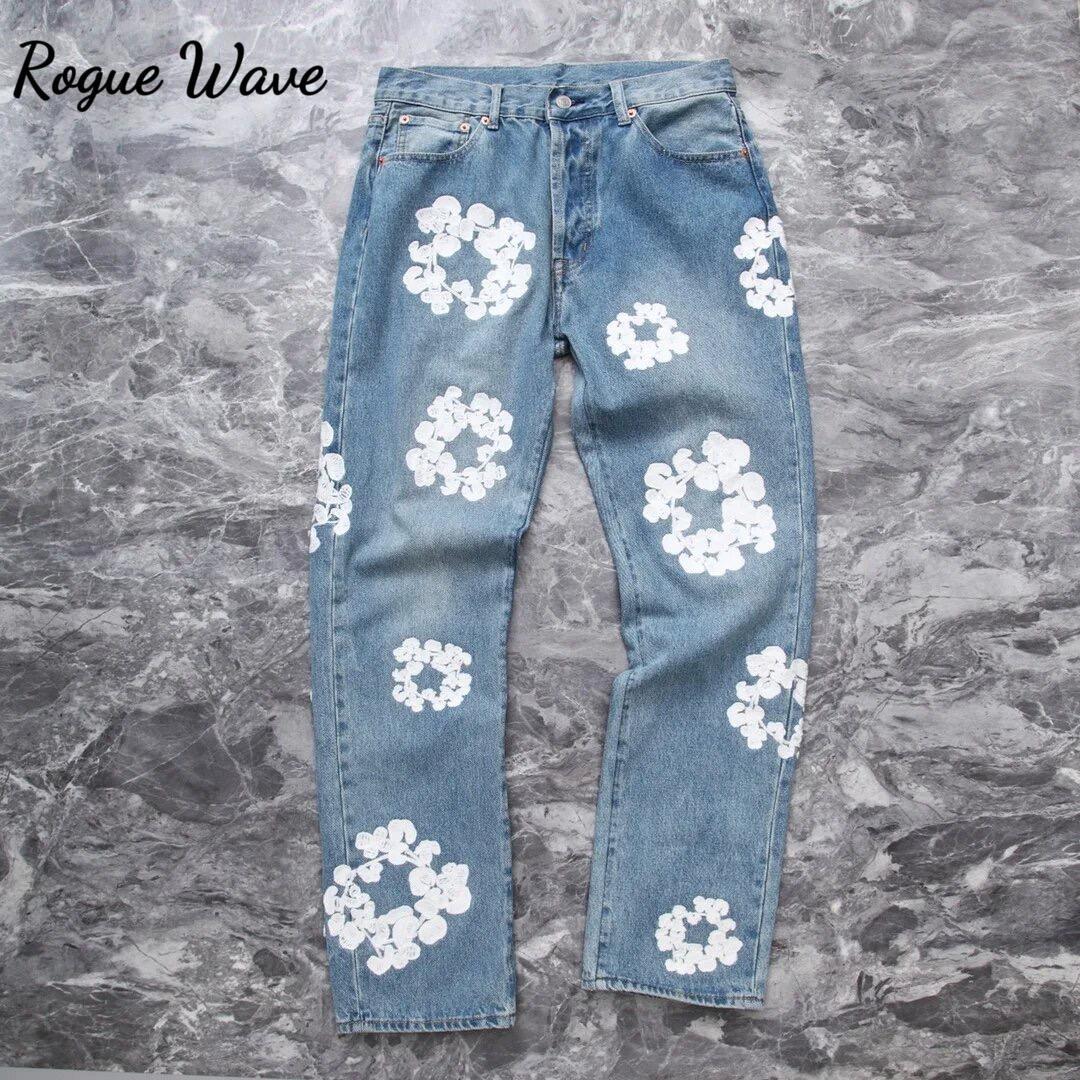 RogueWave Vibe Style Chic Bomullstrykk Vintage Jeans Retro Vasket Hip Hop Slim Denim Bukser cm lyseblå farge