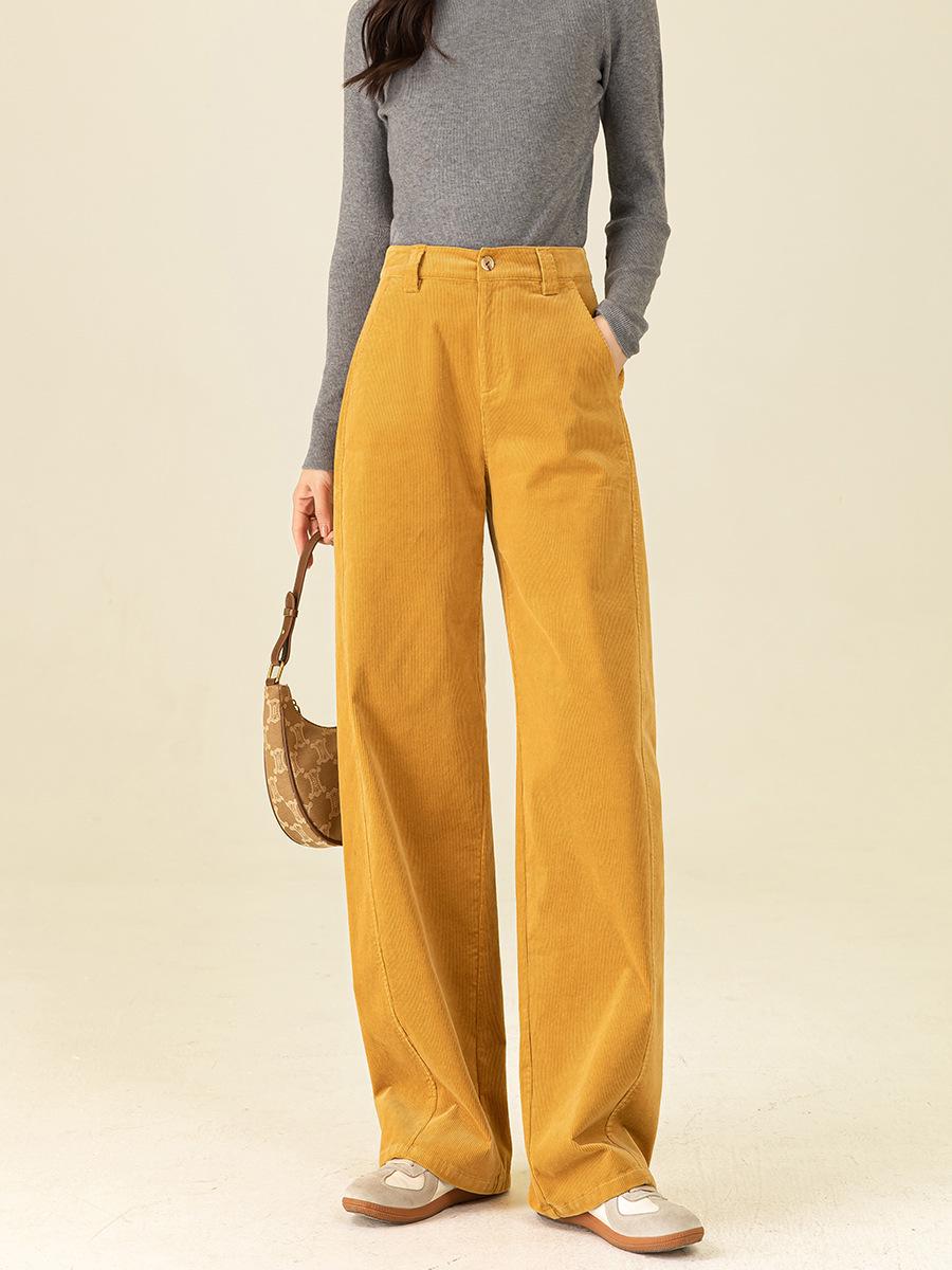 Xin Ge Dame Høyt Liv Kordfløyel Vide Ben Bukser i Lazy Sunset Gul (Høst/Vinter 2025) cm grå farge