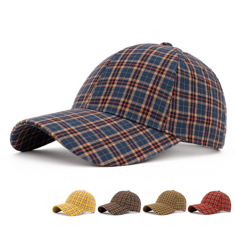 British Plaid Men Baseball Cap Women's Spring Autumn Sun Hat navy blue